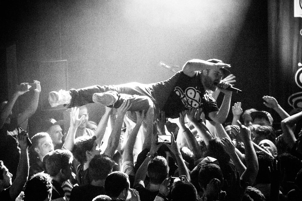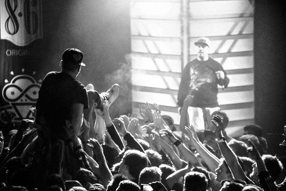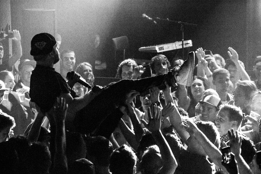 Maar Winne doet zeker niet onder voor hen. Hij is na Sticks en Jiggy aan de beurt om een klassieker als ‘Lotgenoot’ te laten horen. Waar Sticks en Jiggy Djé flinke ego’s hebben, is de Rotterdammer de serieuze, bedachtzame rapper die samen met Dr. Moon de groep bij elkaar houdt. Door de respons van het publiek blijkt eens te meer hoe populair hij is. Toch lijkt Sticks nog steeds de publieksfavoriet. Zeker wanneer Rico, zijn trouwe kompaan uit Opgezwolle, mee komt doen op ‘Hoedenplank’ vliegt het dak van de kleine zaal er compleet af.