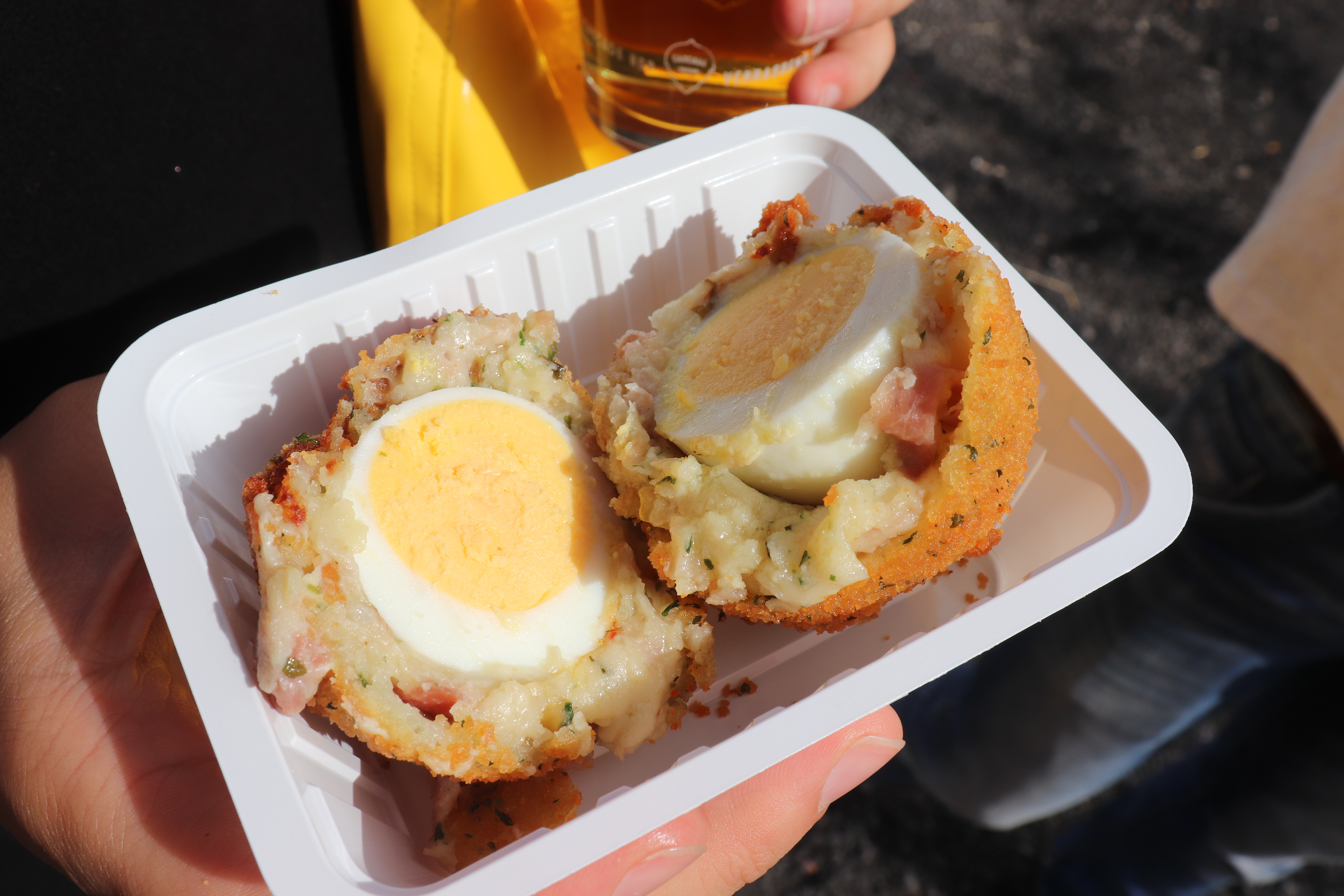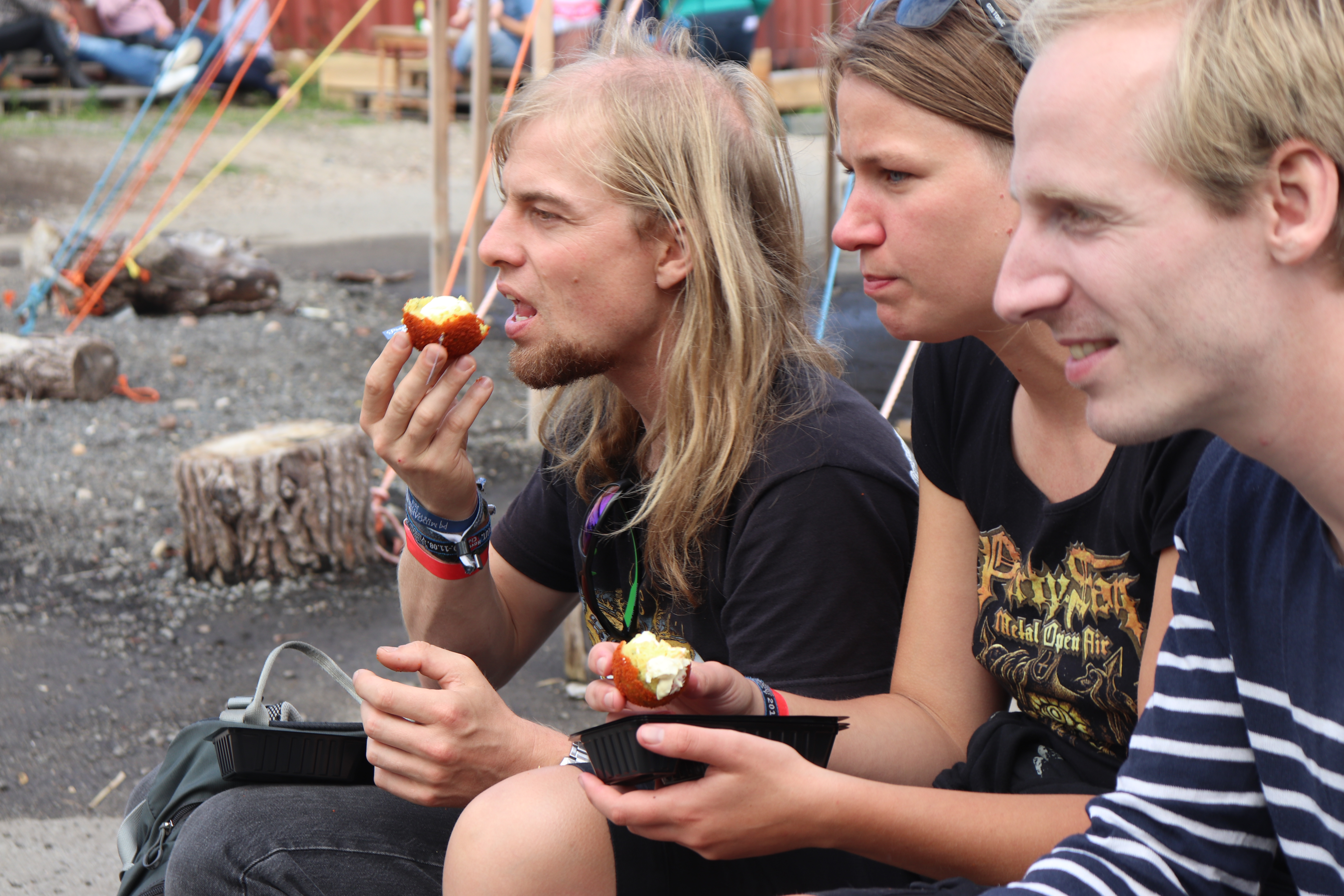 Zelf zijn we bekend met de normale eierbal en de firebal (een pittige eierbal), maar ‘wat de boer niet kent, dat vreet hij niet’ geldt niet voor dit festival. In volle vaart worden garnalen, witlof, kwartel, chorizo en roti eierballen naar binnen gewerkt. Zo snel zelfs dat alle bijzondere eierballen om 15:00 al zijn uitverkocht. Toch een beetje sneu als je om 17:00 komt aankakken en het dan moet doen met een normale eierbal. Maar goed, we zien meer ballen dan heel Vindicat b’’ei’’ elkaar. Zelf hebben we het genoegen om als een soort Rob Geus de kwartel, de chorizo en de firebal te proeven en wat zijn ze lekker.