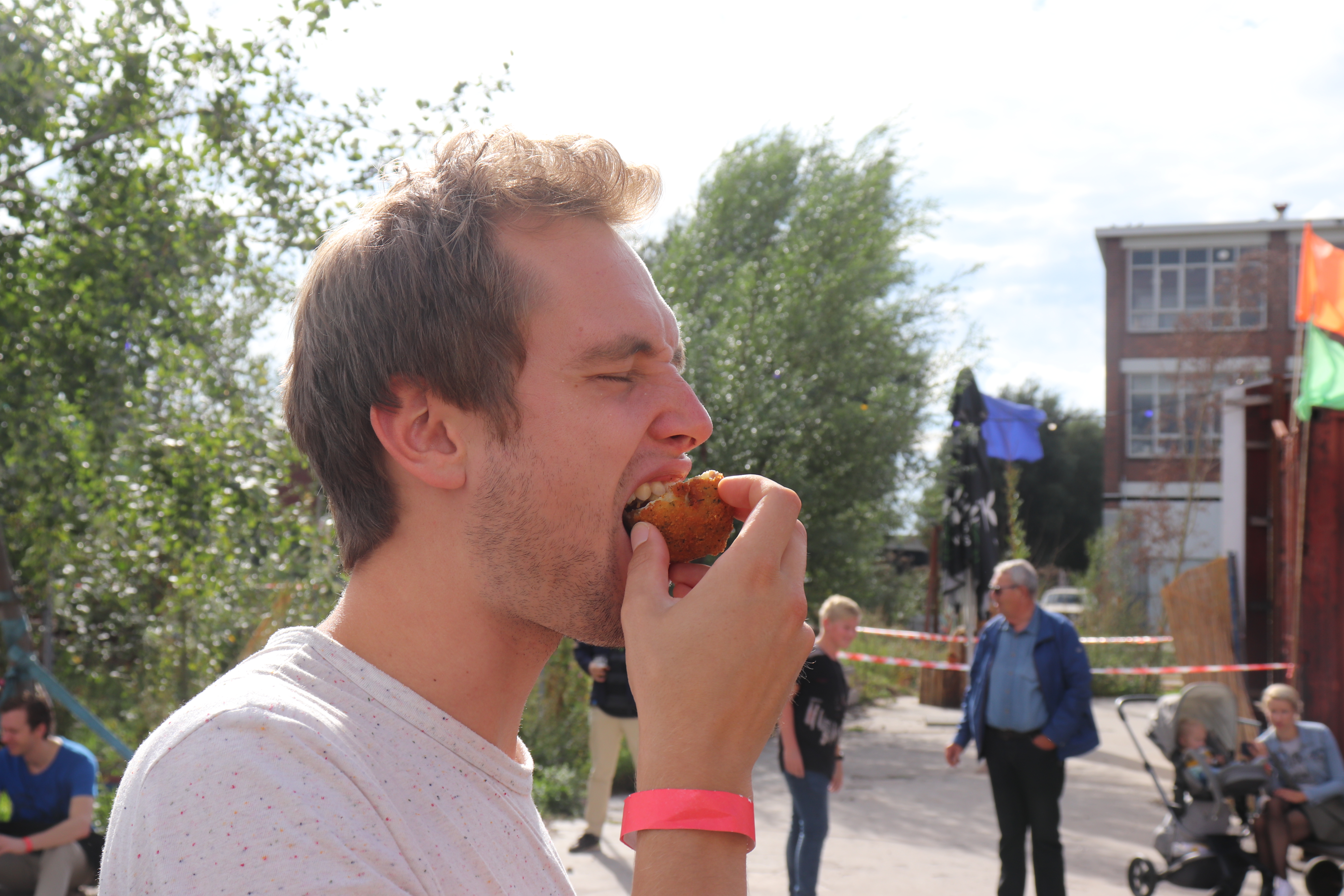 Zondag 9 september breekt dan eindelijk het moment aan waarvan menig Grunnings hart sneller gaat kloppen (nee, FC Groningen staat nog steeds zes plekken onder Heerenveen): het officiële eierbalfestival. De eierbal heeft in Groningen een koninklijke status. Het is dan ook niet zo gek dat er een heel festival aan deze snack wordt gewijd. Voor de nieuwe studenten die nog niet bekend zijn met deze gefrituurde parel: het is een hardgekookt (gepeld) ei, omhuld met ragout, beetje paneren en dan hup de frituur in. Zelf hebben we al menig eierbal om 03:00 ‘s nachts uit de muur getrokken. Dit spektakel konden we daarom natuurlijk niet missen.